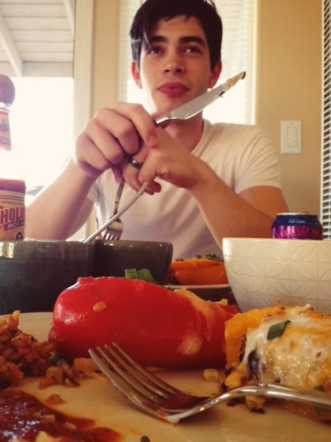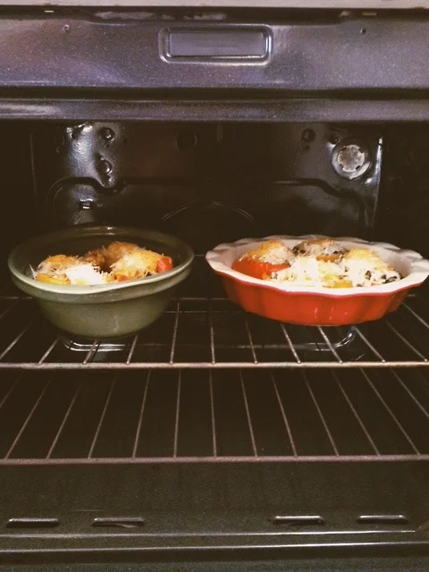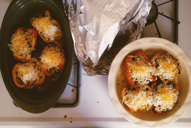 The recipe called for 1/3 cup of chicken broth, but all I had was a quart sized container. I didn’t want the rest of it to go to waste so I ended up using it to make brown rice and added it to the bell pepper filling.