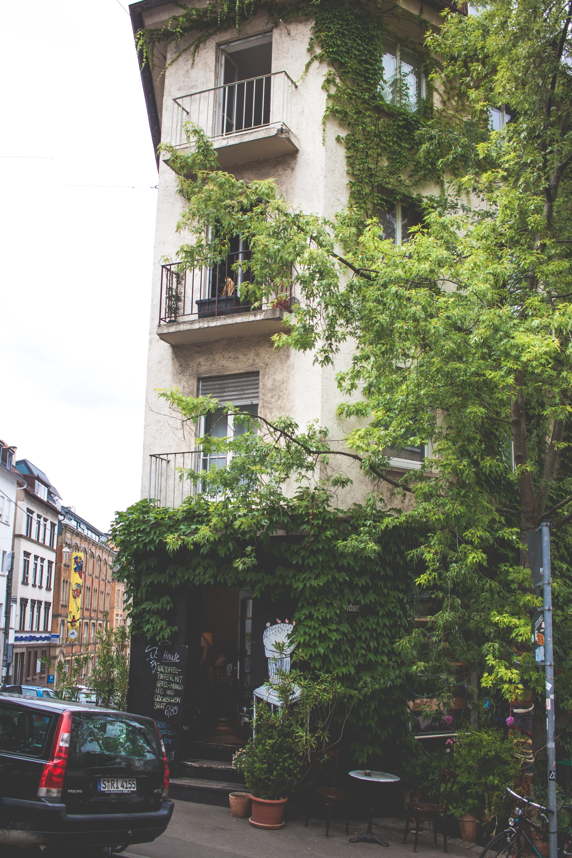 There's nothing like accidentally stumbling into an absolutely wonderful cafe in an unknown place. On our first midnight walk in Stuttgart (apparently that is becoming a tradition of our stay here) we headed aimlessly in and out, and up and down, of dimly-lit streets seeking adventure. On this particular walk there wasn't too much to see, but I did notice a couple of stools in a big window and was overjoyed to turn the corner and find they belonged to a cute little cafe. It was decided that we'd mosey our way back in the morning, and boy are we glad that we did!