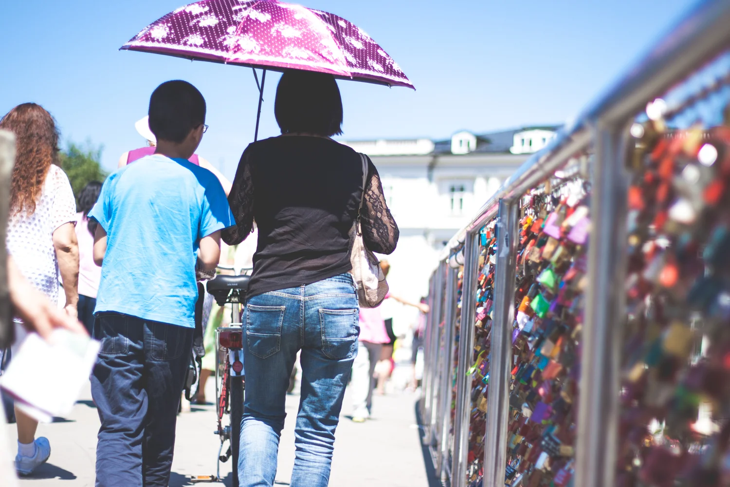 There was no way we were going be 20 minutes from the border of Austria – even better, the city of Salzburg – and not cross over into it. This colorful city was so much fun to walk through. It was just a short trip, but it was the perfect amount of time because weaving through tourists gets old pretty fast (for me at least). I loved the vibrant gardens, the old city buildings, and one of the, now, many lock bridges.
