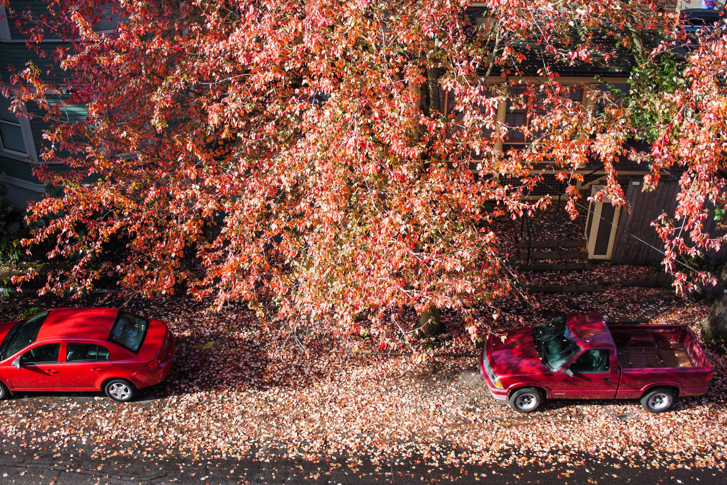 The tree across the way has quickly turned from green to red and just like that it's gone.